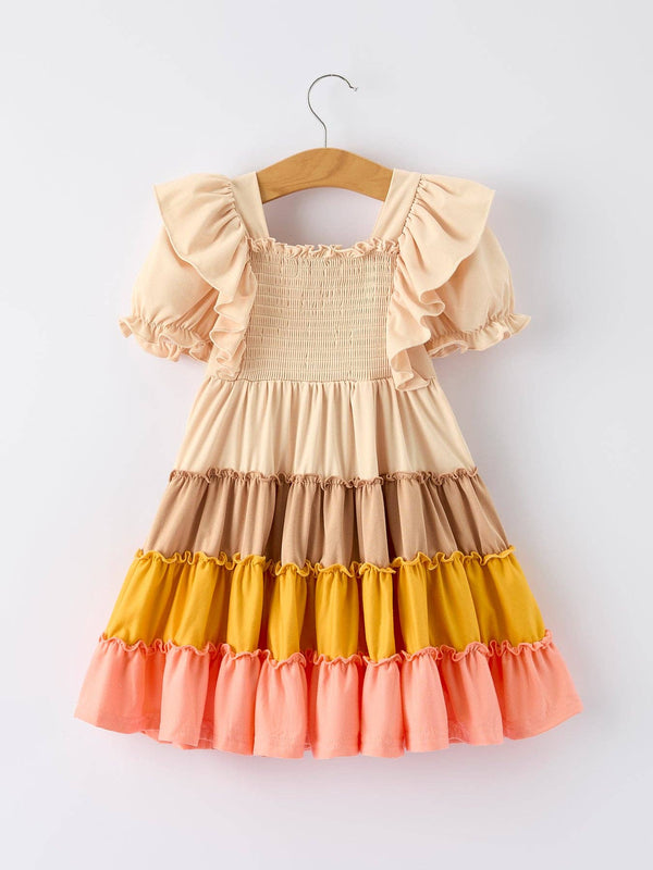 Fall Bohemian Style Toddler Girl Dress with Ruffles