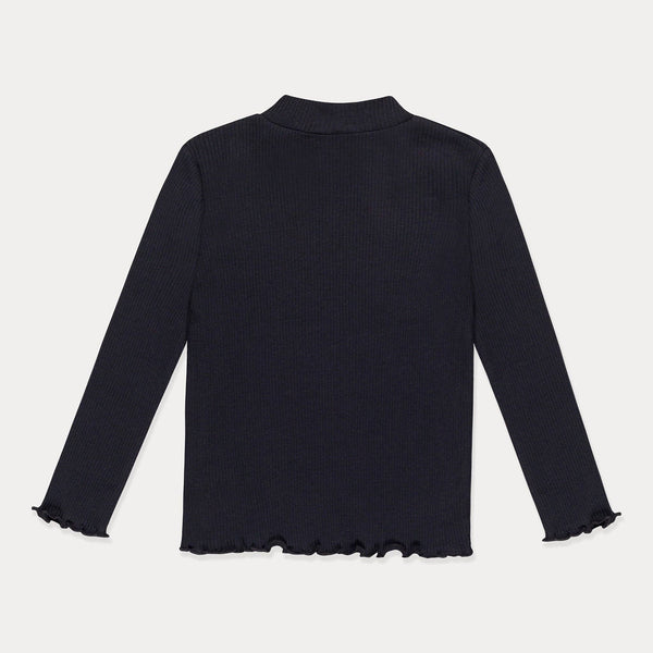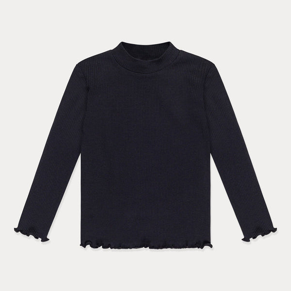 Toddler Girls Top Long Sleeve Shirt, Cotton Ribbed, Navy Blue
