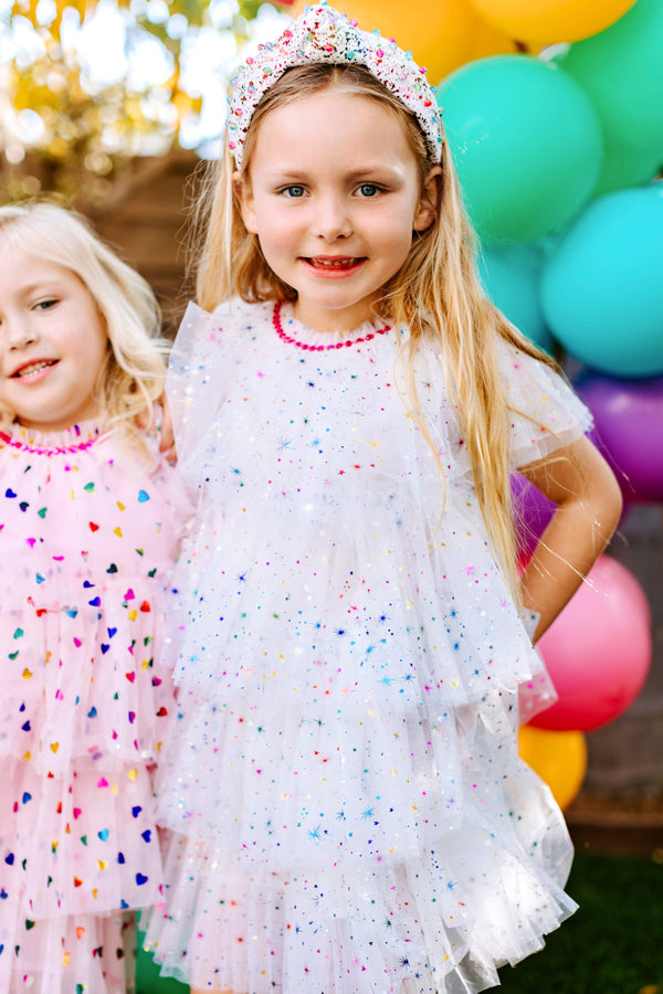 White Sparkler Foil Cake Dress | White Birthday Cake Dress