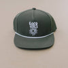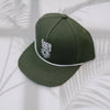 Care and Cleaning : Do not get leather wet Spot clean Air dry FABRIC : 100% Cotton Green 6 Panel White rope with white embroidery logo