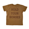 This little sheriff tee is perfect for the playground, playdates, trips out west, your first rodeo or ANY DAY OF THE WEEK. We are loving this brown on brown print. The front left chest holds a sheriff badge print and the back says "hold your horses" in a bold print. We know your little sheriff will love this one!
