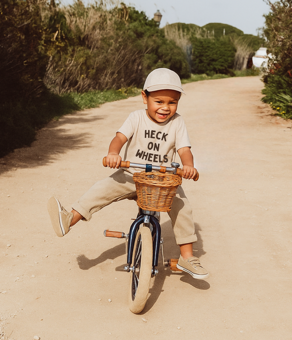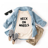The Heck on Wheels tee is made to celebrate the chaos. The joyful, high-speed, snack-in-hand kind of chaos. Because being wild isn’t a flaw… it’s a feature.