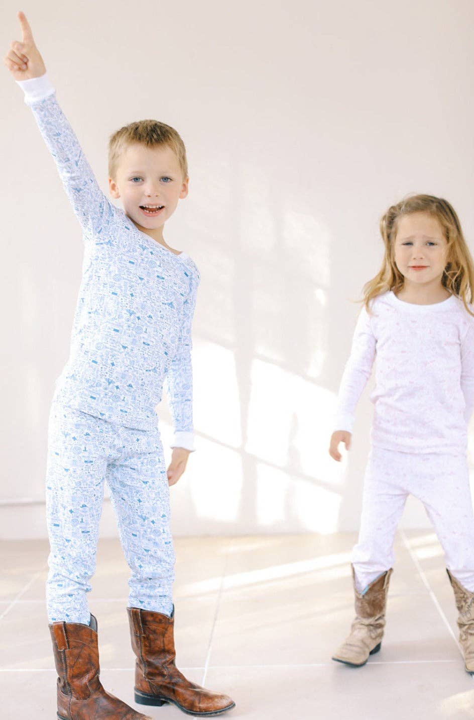 Howdy y'all! Explore Joy Street Kids Houston pajamas, hand drawn by our founder Eliza. From the Bayou City to BBQ & Longhorns and Livestock shows to the Space Center, there is one thing we know for sure, WE LOVE HOUSTON. This Texas print will fill you and your little with all of the nostalgia and yee-haw's that Houston has to offer! Bless your heart and sleep tight in our Houston pajamas.