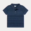 Add some style to your little one's wardrobe with our Toddler Polo Shirt! This short sleeve cotton striped boys polo shirt in dark blue is perfect for any adventure. Available in sizes 2T-7 years, it's a fun and trendy choice for your toddler.