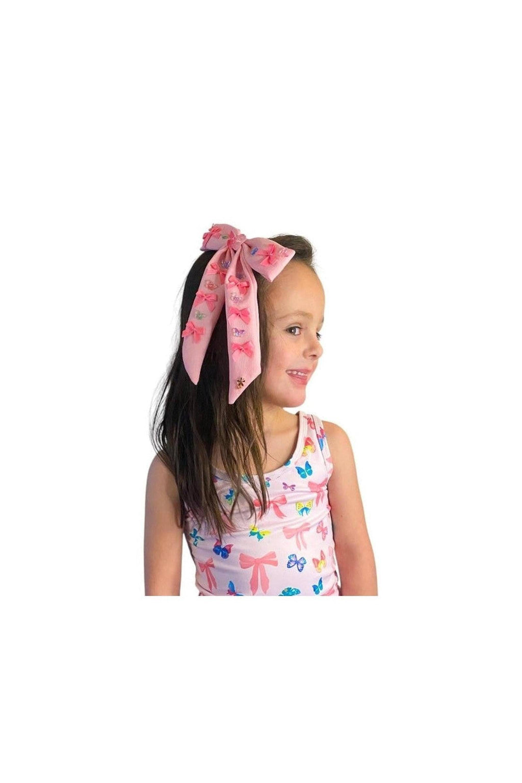 Add a touch of whimsy to your look with our Light Pink Chiffon Bow! This charming accessory features soft chiffon fabric adorned with mini pink ribbon bows and delicate butterfly charms. The convenient clip-on design makes it easy to attach to hair, perfect for adding a playful flair to any outfit. Ideal for all ages, this bow is a lovely way to express your style and celebrate the beauty of everyday moments!