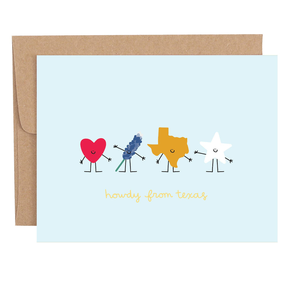 Size: A2, 4.25×5.5" Interior: Blank Foil: Gold Envelope color may vary Sentiment: Howdy From Texas