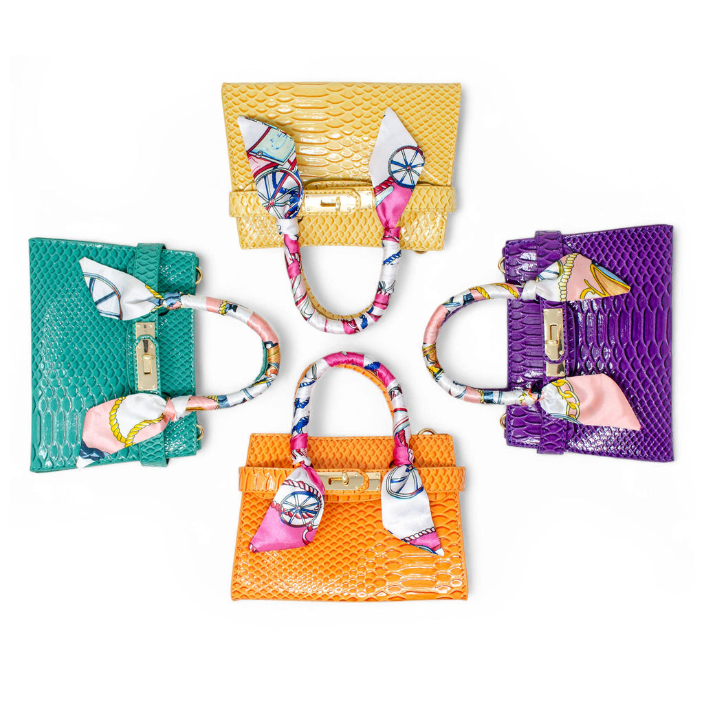 The magnetic closure ensures easy access while keeping essentials secure, and the twist buckle strap on the front adds an extra layer of charm. The elegantly wrapped silk-like scarf on the handle brings a chic, playful flair, making this handbag a must-have accessory for any stylish kid. Whether for a special occasion or everyday wear, this handbag is the perfect blend of fashion and function!