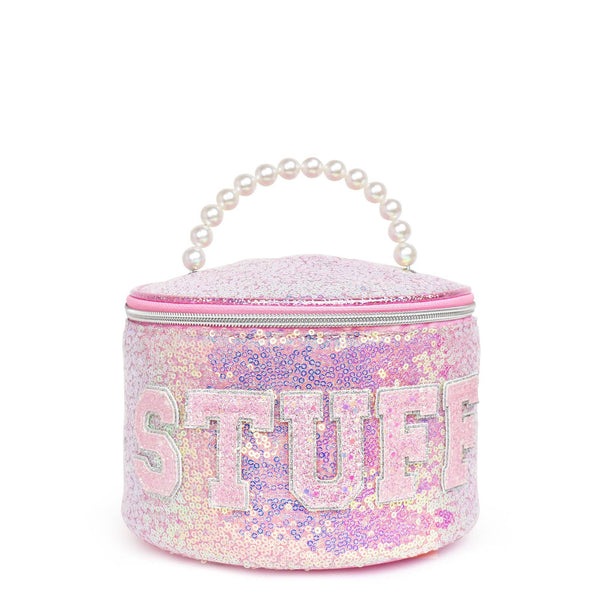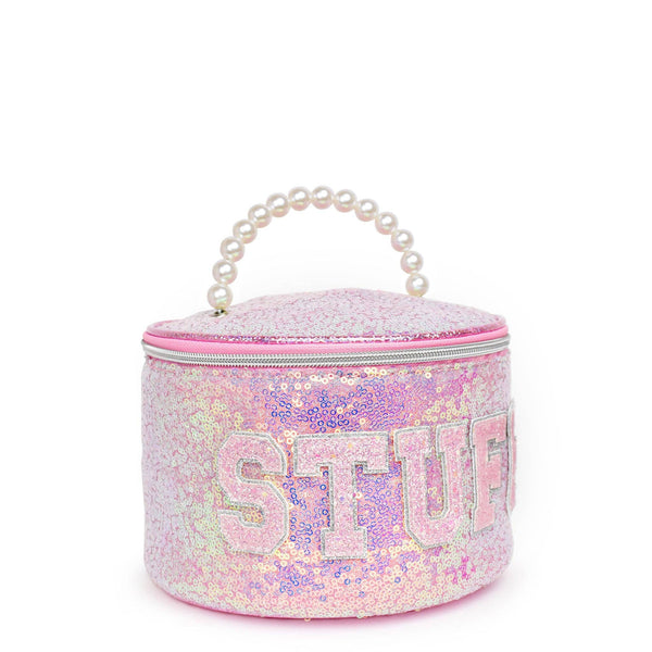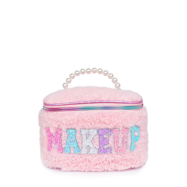 'Makeup' Sherpa Pearl Handle Glam Bag