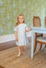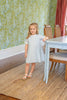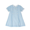 The "Alice" dress is just precious with its polka dot trim and covered buttons. Fully Lined and True to size. We recommend washing with like colors, on delicate and hang to dry. Coordinates with: Emmaline bubble pink/blue, Ellen Dress pink/blue, Kolson Bubble Lt Blue/Navy, John Short Set Lt. Blue/ Navy