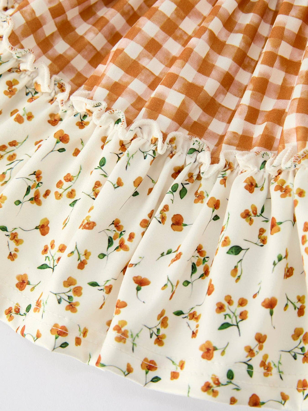 This Autumn Patchwork Floral & Plaid Long Sleeve Girls Dress blends charming patterns with cozy comfort, making it perfect for the season. Designed with soft fabric and a playful mix of florals and plaid, it keeps your little one stylish and warm during cooler days. Its long sleeves ensure coverage while allowing freedom of movement for active play. Ideal for family outings or festive occasions, this dress adds a touch of seasonal cheer to any wardrobe.