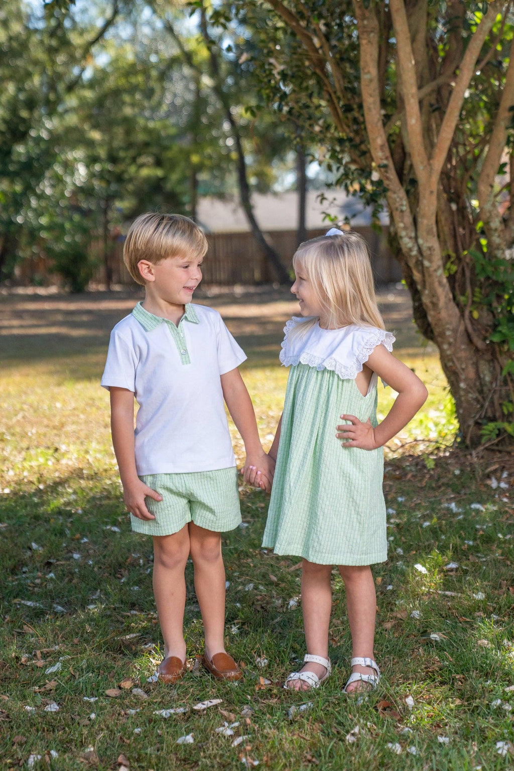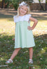 Be the envy of every spring picnic in this Demi Green Check Dress. The playful green check pattern is complemented by a charming white eyelet bib collar. Perfect for your little girl to rock some serious spring style.