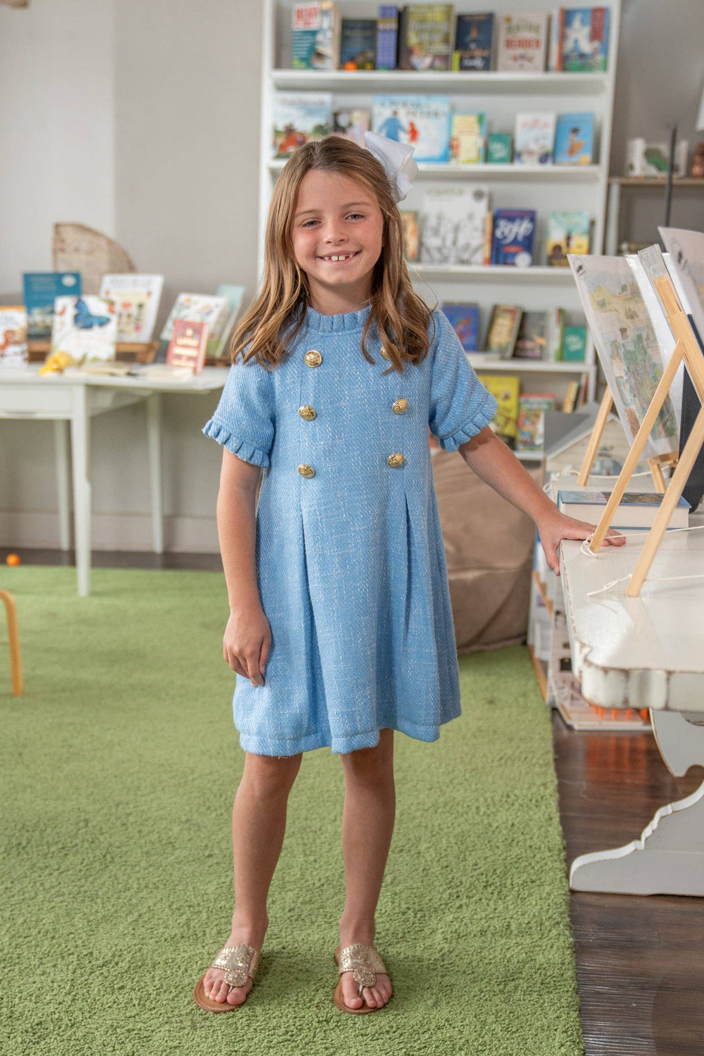 Get ready for Sunday best with the Emerson Bluebird Tweed Dress! Featuring a classic silhouette and fully lined design, this dress coordinates perfectly with the Charles Jon Jon and Kate Dress. Look stylish and feel comfortable in this timeless piece.