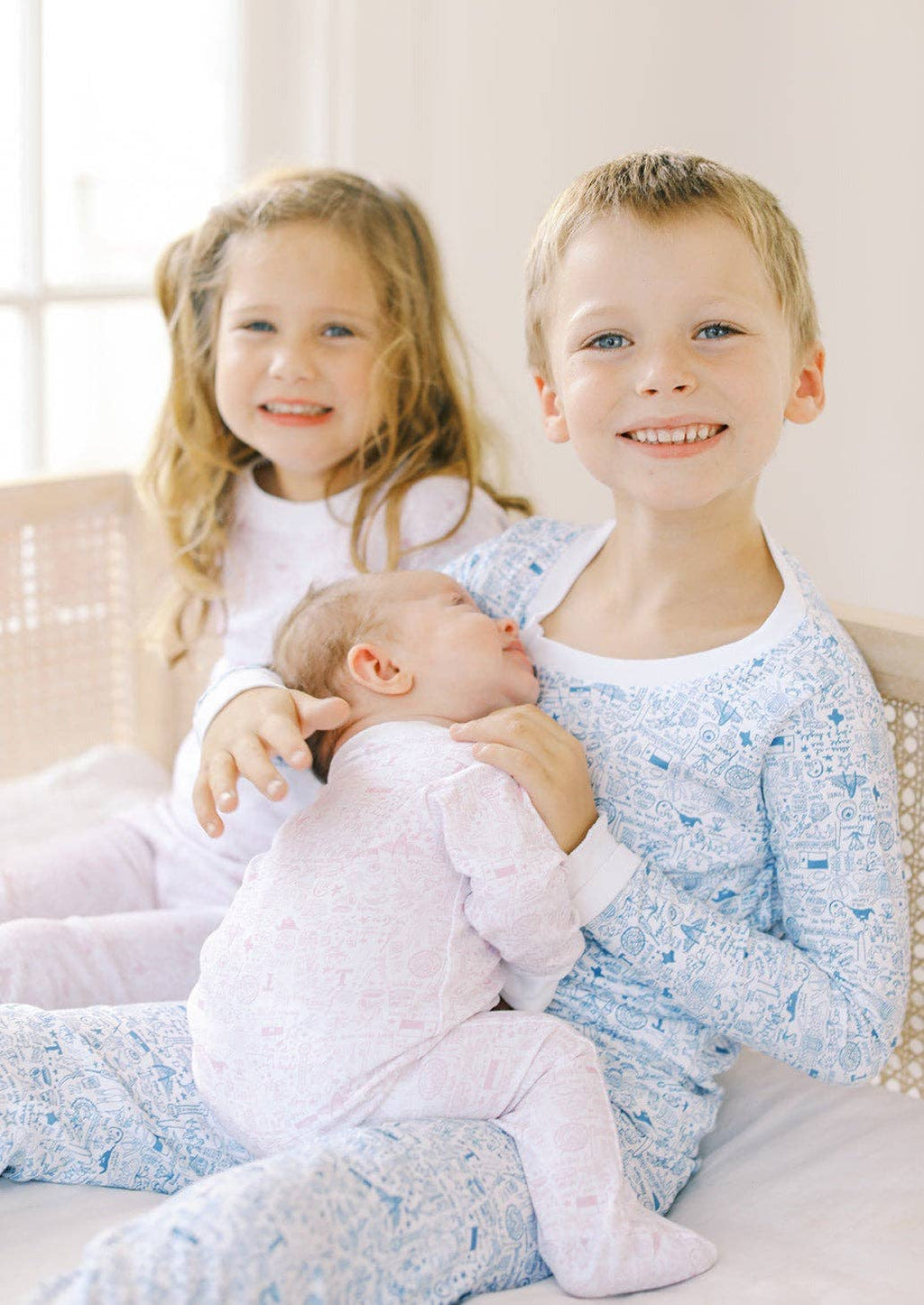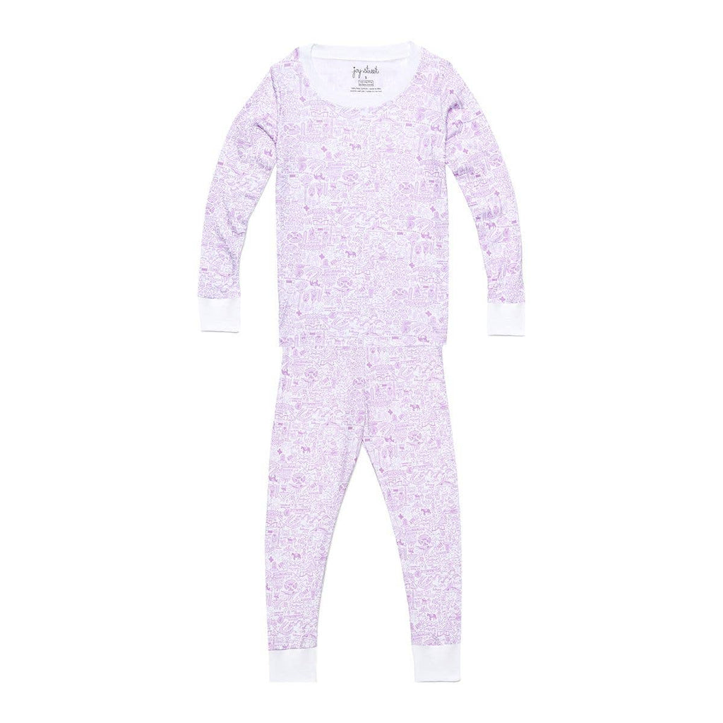 Howdy y'all! Explore Joy Street Kids Houston pajamas, hand drawn by our founder Eliza. From the Bayou City to BBQ & Longhorns and Livestock shows to the Space Center, there is one thing we know for sure, WE LOVE HOUSTON. This Texas print will fill you and your little with all of the nostalgia and yee-haw's that Houston has to offer! Bless your heart and sleep tight in our Houston pajamas. Very snug fitting - we recommend sizing up by +1-2 sizes TWO-PIECE PAJAMA SIZE CHART