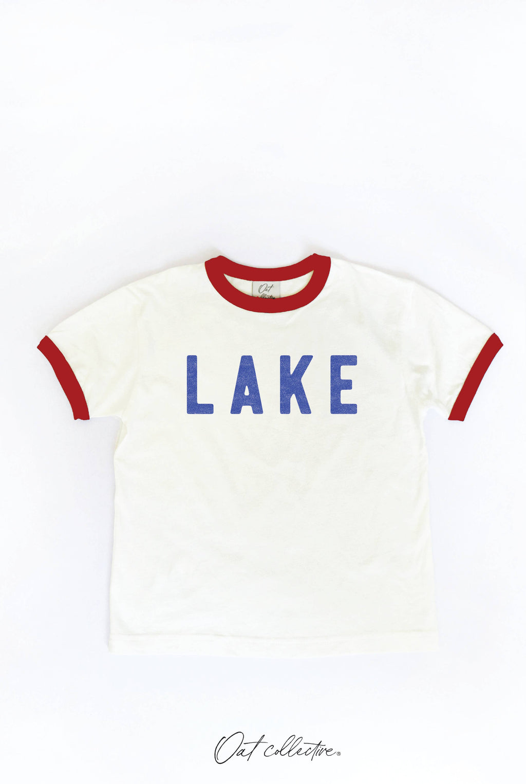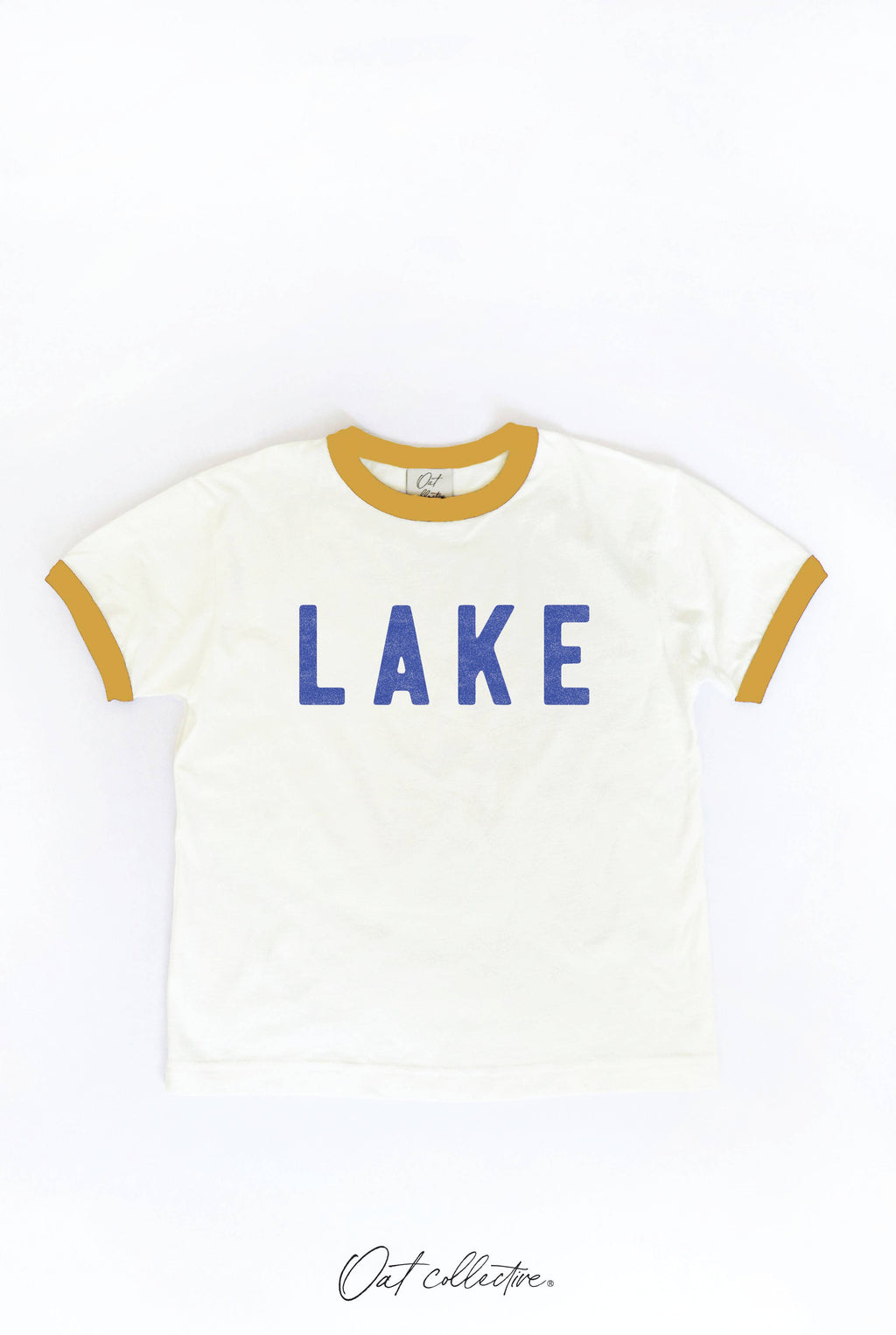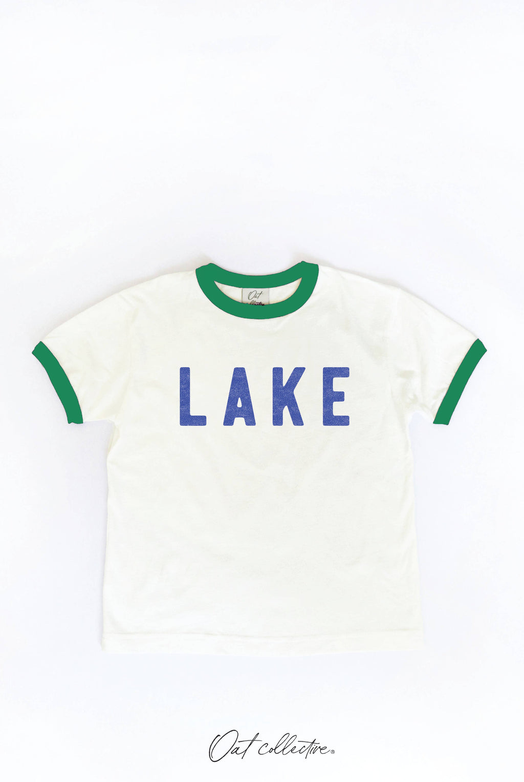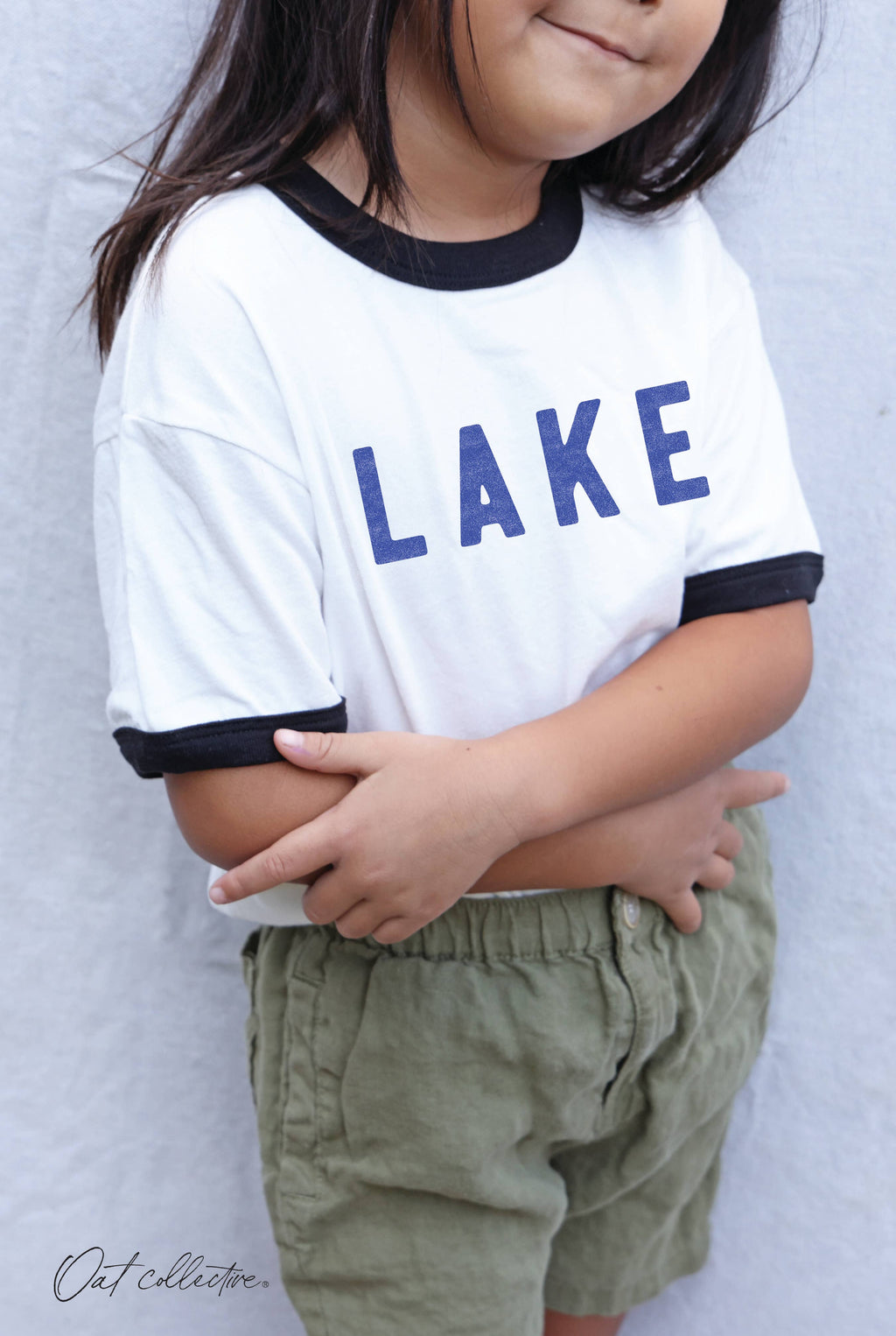 LAKE Toddler Unisex Ringer Top -Limited Quantities! -Quality-100% Premium Airlume combed cotton -Contrasting 1x1 baby rib binded collar and sleeves -Hand printed with water Based Ink.