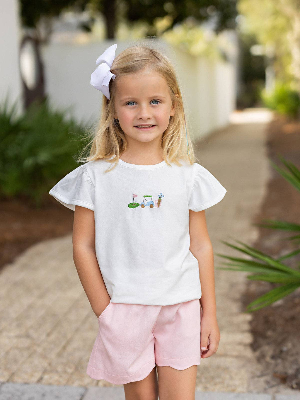 Our signature soft twill girls shorts are what scalloped dreams are made of. The perfect length paired with scalloped leg openings and pockets, what more could we ask for? Pair with one of our signature moon stitch sleeveless shirts or one of our pima patterned shirts. These shorts will be your go to for now until winter!