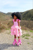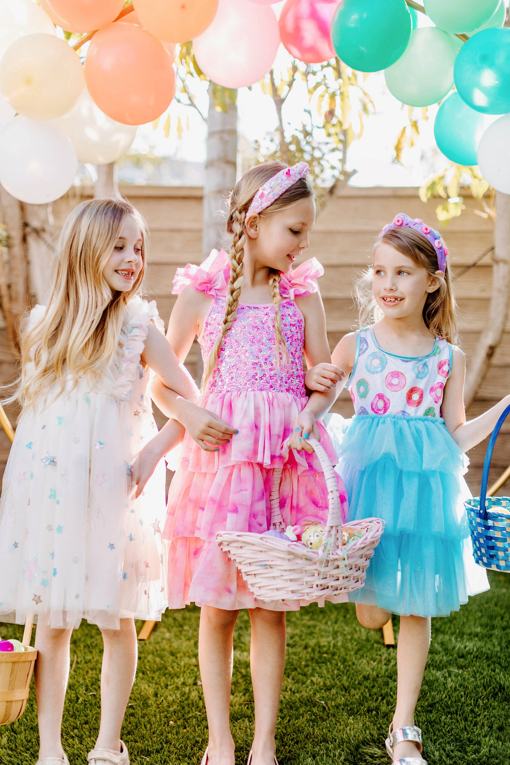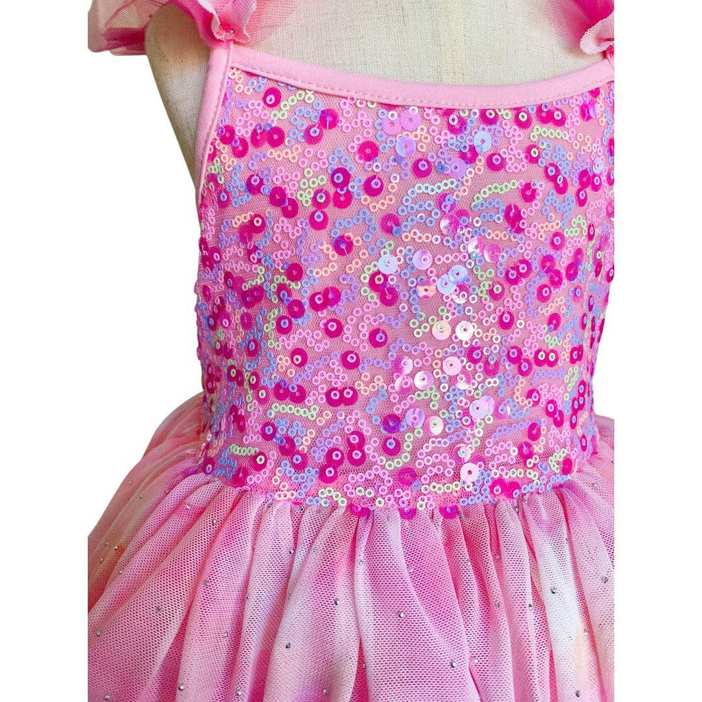 Make a dazzling entrance in our ombre pink sequin dress! This enchanting piece features three layers of soft ombre pink tulle adorned with tiny sparkles, creating a magical effect. The bodice is embellished with matching pink sequins, while the straps showcase extra tulle accents for a bold statement. Complete with a convenient zipper at the back, this dress is perfect for special occasions and will make any young girl feel like a princess!