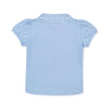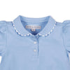 Our soft, easy-to-wear polo features comfortable organic cotton jersey fabric and looks cute worn on its own or layered under her favorite jumper or sweater. Features a rounded peter pan collar with contrast ricrac trim, center front button placket, and gently puffed sleeves. Pairs beautifully with our collection of shorts and skorts.