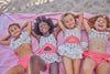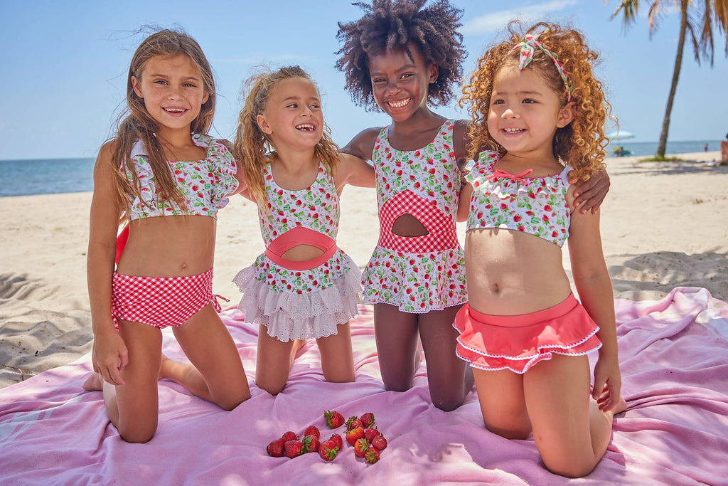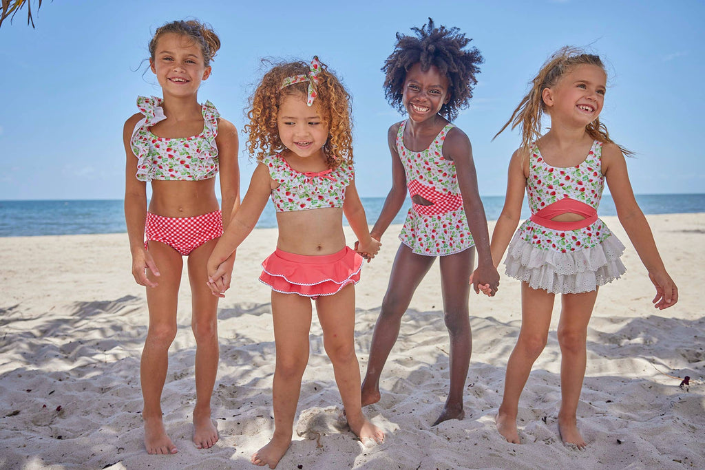 Dive into summer fun with our Paradise Castle One Piece Swimsuit from Blueberry Bay! Crafted from a blend of 70% polyester and 30% elastane, this swimsuit is designed to keep your little one comfortable and stylish for their beach adventures. This piece is perfect for the spring and summer seasons, allowing your child to make a splash while staying cool. It's also easy to care for; just toss it in the machine for a quick wash. Inspired by Grandma Gwen's summer memories, our swimsuit brings joy and creates lasting memories, just like the ones made in her cottage nestled between the blueberry patch and the bay.