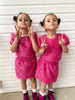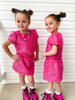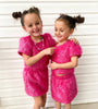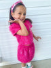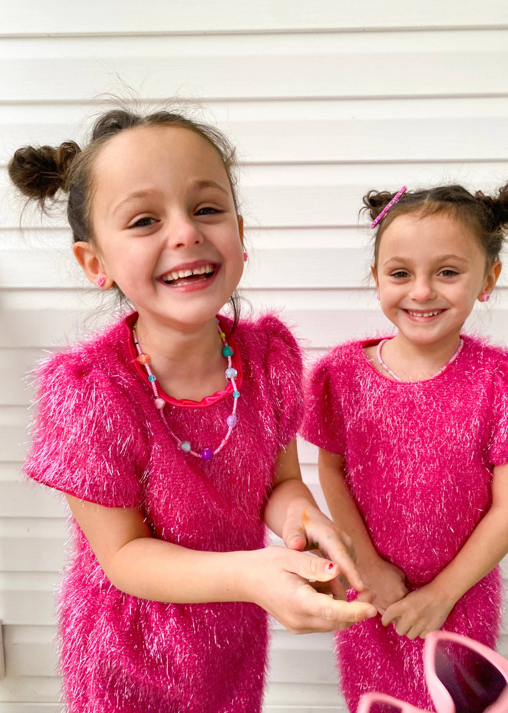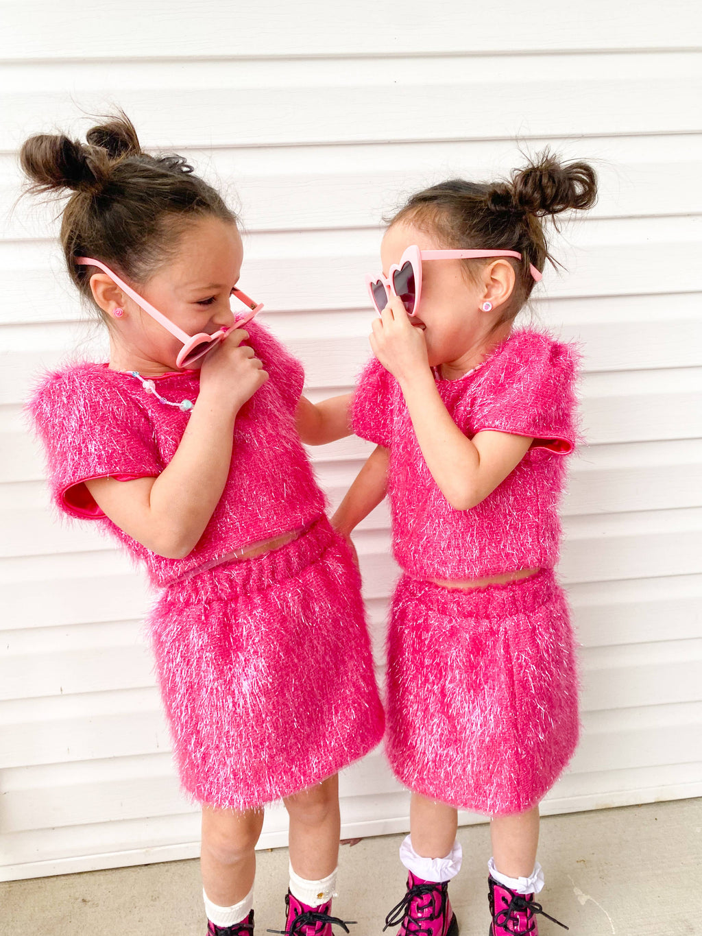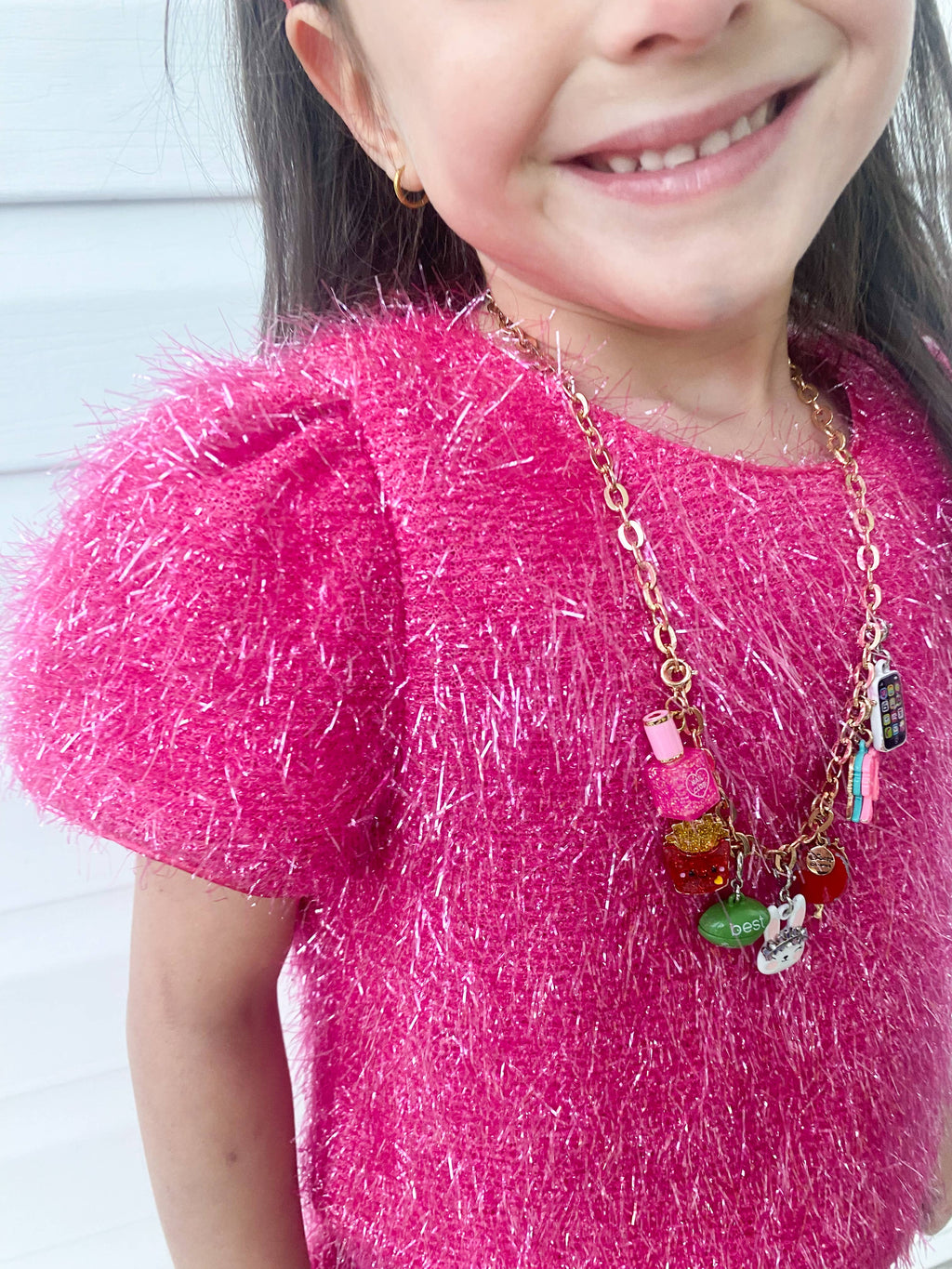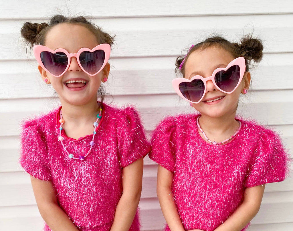 Unleash your inner sparkle with our stunning Girls Sparkle Tinsel Two-Piece Set! This enchanting outfit features a chic satin lining, while the top features a zipper on the lower back and a convenient hook clasp to effortlessly pull over your head. The playful puff sleeves add a whimsical flair, and the skirt’s elastic waistband ensures a comfortable fit for all-day fun.