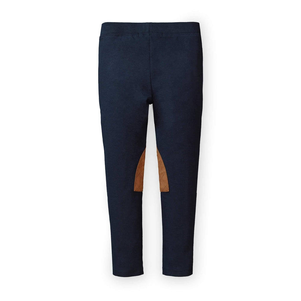 For the equestrian at heart, our riding pant in luxurious ponte di Roma will be your girl's go-to pant of the season. Our cozy knit is much thicker than the average legging and offers easy pull-on functionality with a flat elastic waistband. Features a slim fit and lovely faux suede double welt decorative pockets and quilted knee patches. * 64% Organic Cotton, 32% Polyester, 4% Spandex, exclusive of trims. Garment is OCS-Certified. Learn more about our certifications here. * Quilted faux suede knee patches and double welt pockets. Slim cut with plenty of stretch and a flat elastic waistband for a comfortable fit. * Machine washable.