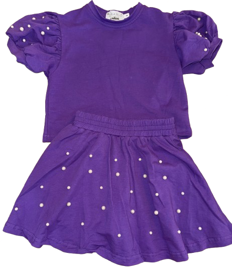 Embrace the preppy style with our Pearl Skirt Set, brought to you by Blended Spirit Children's Clothing. This top and skirt set is adorned with delicate pearls, making it an ideal outfit for all the fun events in your child's life. This set embodies the joyous spirit of playwear that we strive to create. Let your child shine in our Pearl Skirt Set, a perfect blend of comfort and style.
