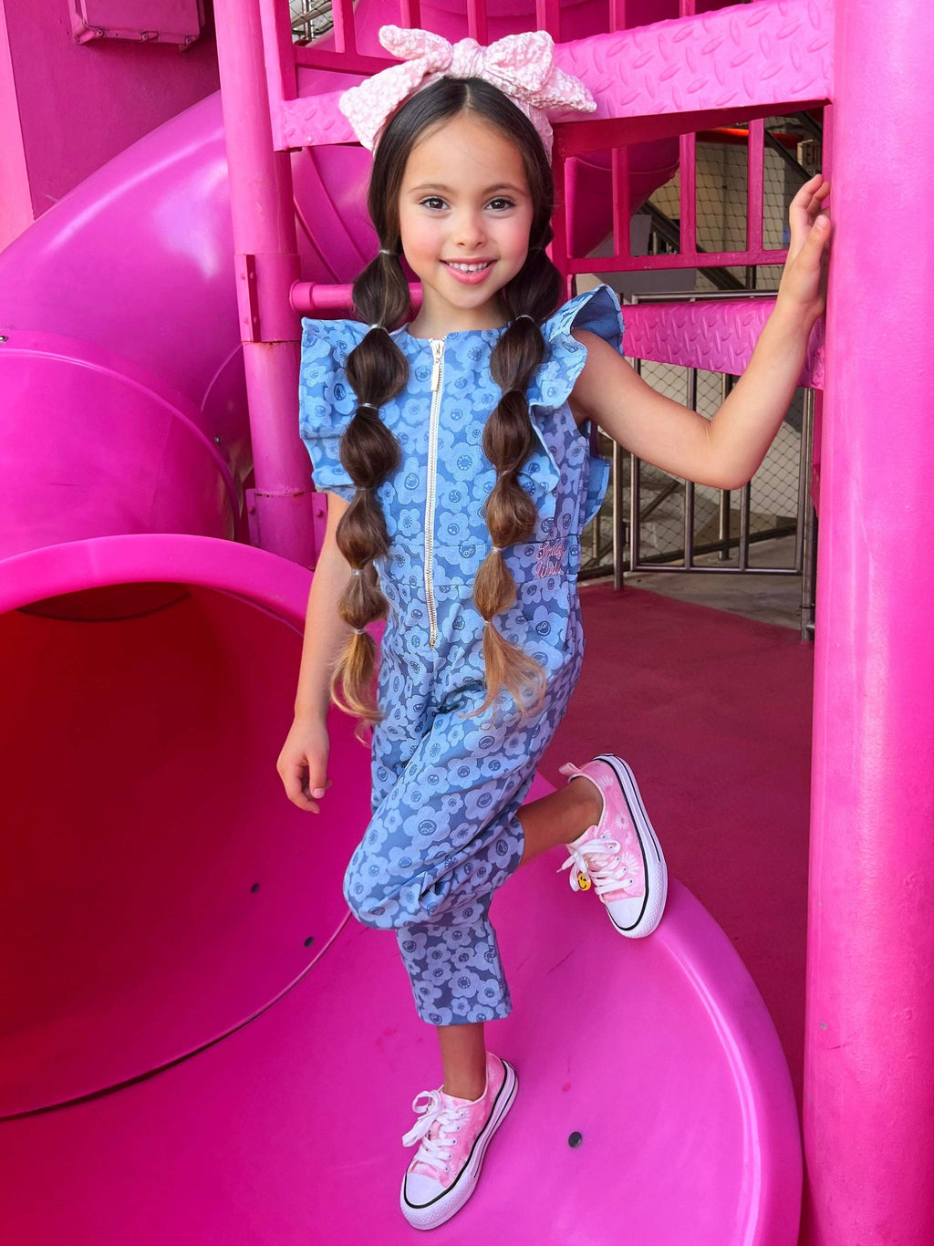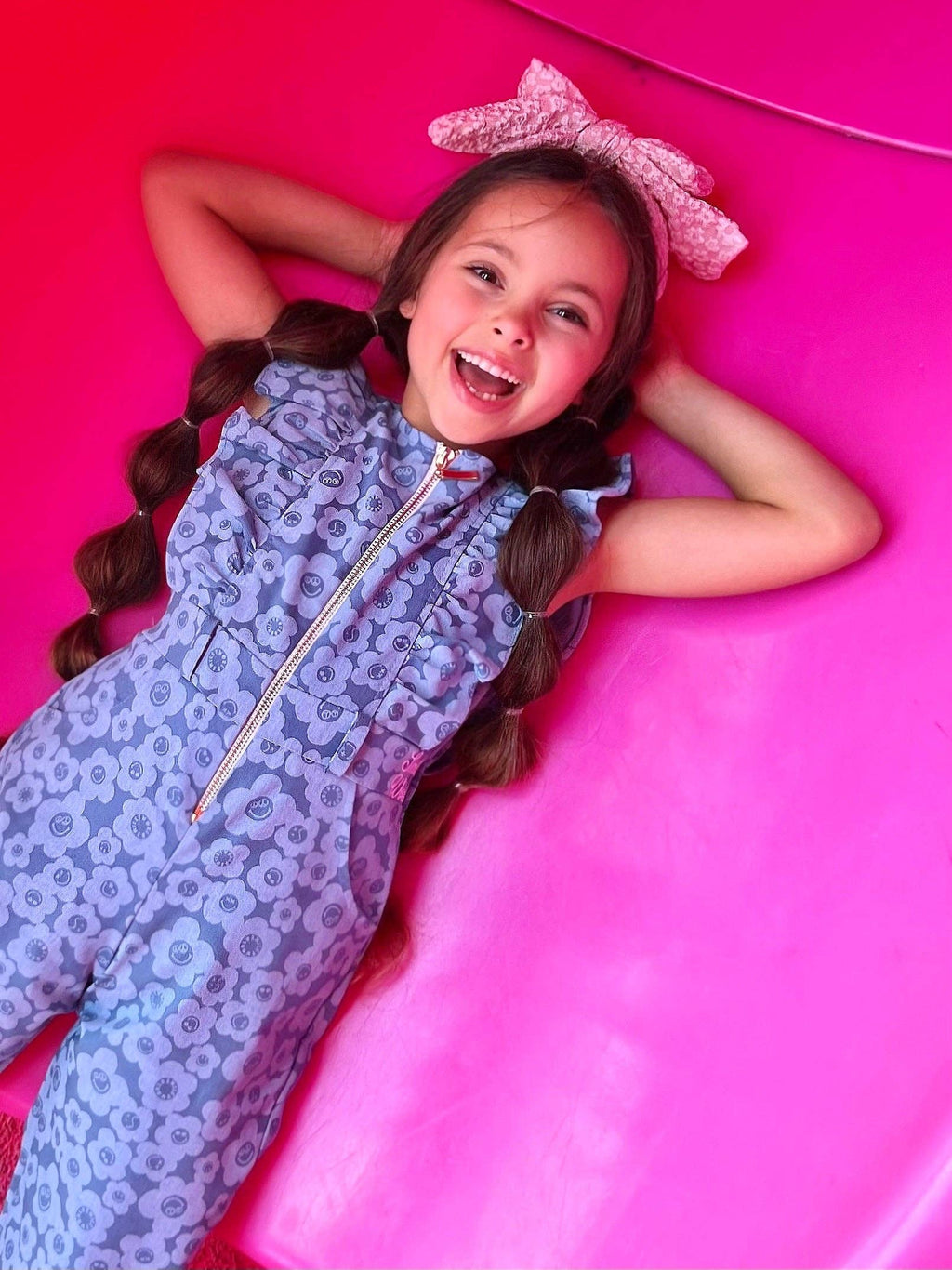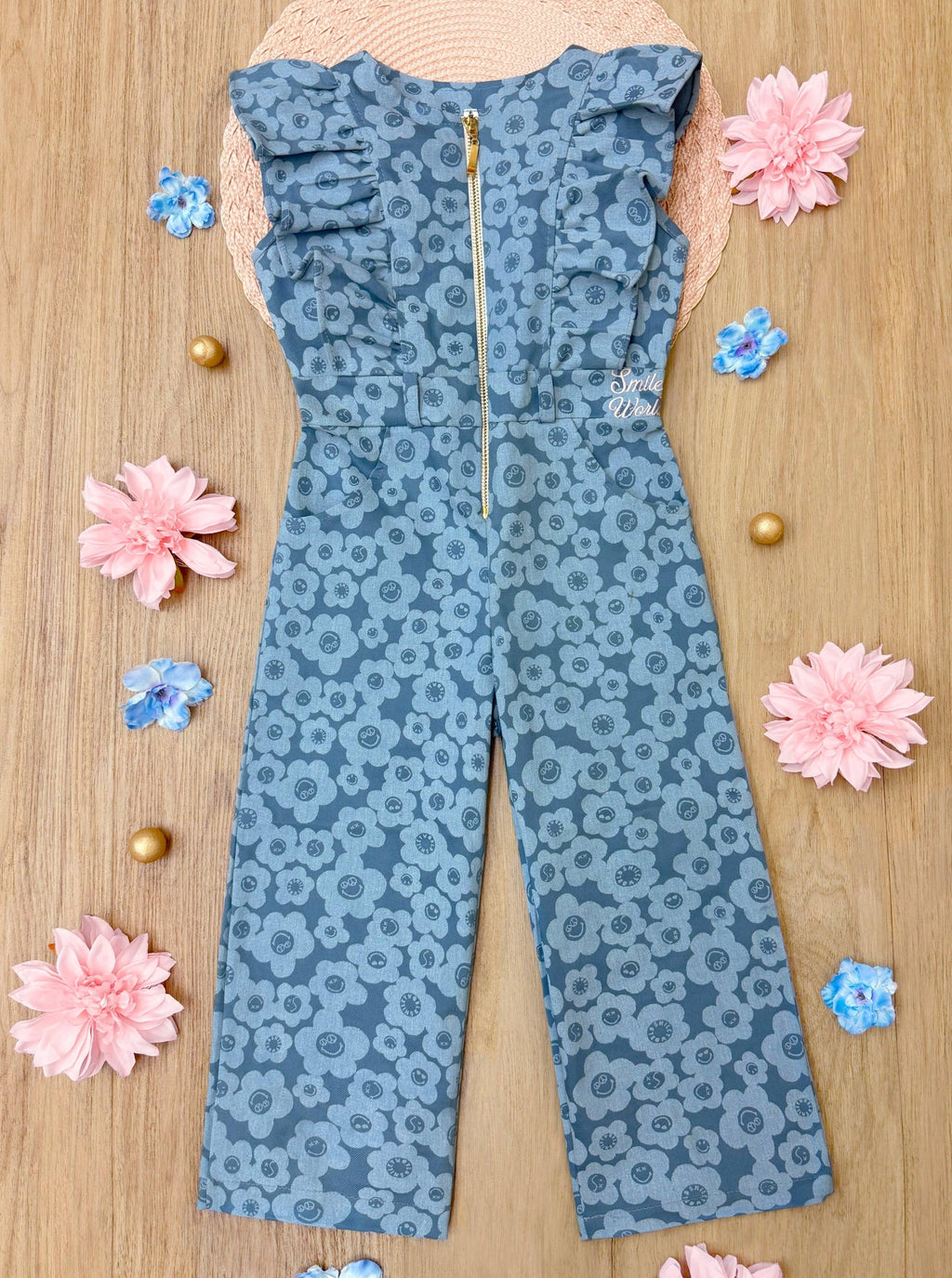 * An outfit that's as fierce as her spirit, your little girl will adore our chambray SmileyWorld® jumpsuit. It's not just fun or fashionable but functional, with front and side pockets for storage and belt loops for extra style flair!