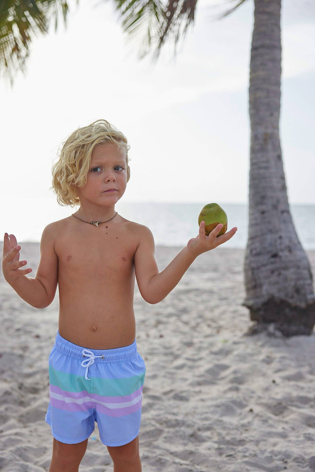 Introducing the Blue Chill Youth Trunks from Blueberry Bay, the perfect companion for your child's spring and summer adventures. These trunks, made from a comfortable blend of 70% polyester and 30% elastane, are designed to withstand countless beach trips and pool parties. They're easy to care for too, just pop them in the washing machine and they're ready for the next sunny day. Inspired by Grandma Gwen's cherished summer memories with her grandchildren, these trunks capture the joy of making lasting memories in the great outdoors. Let your child make the most of their summer with Blueberry Bay.