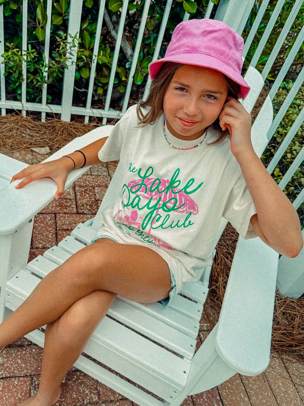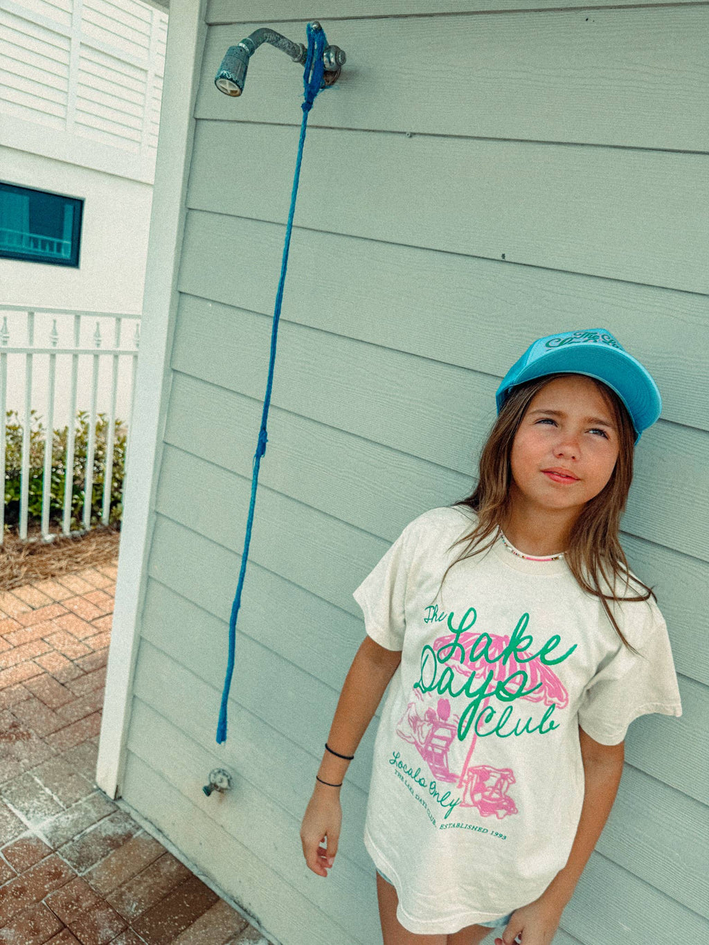 Get all of the Summer vibes in our vintage Lake Days inspired boxy cotton kids t-shirt.