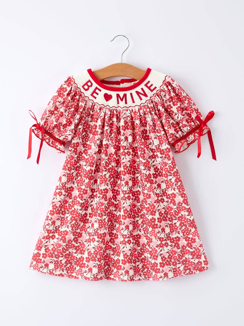 Valentine's Day "BE ❤ MINE" Embroidered Floral Girls' Dress