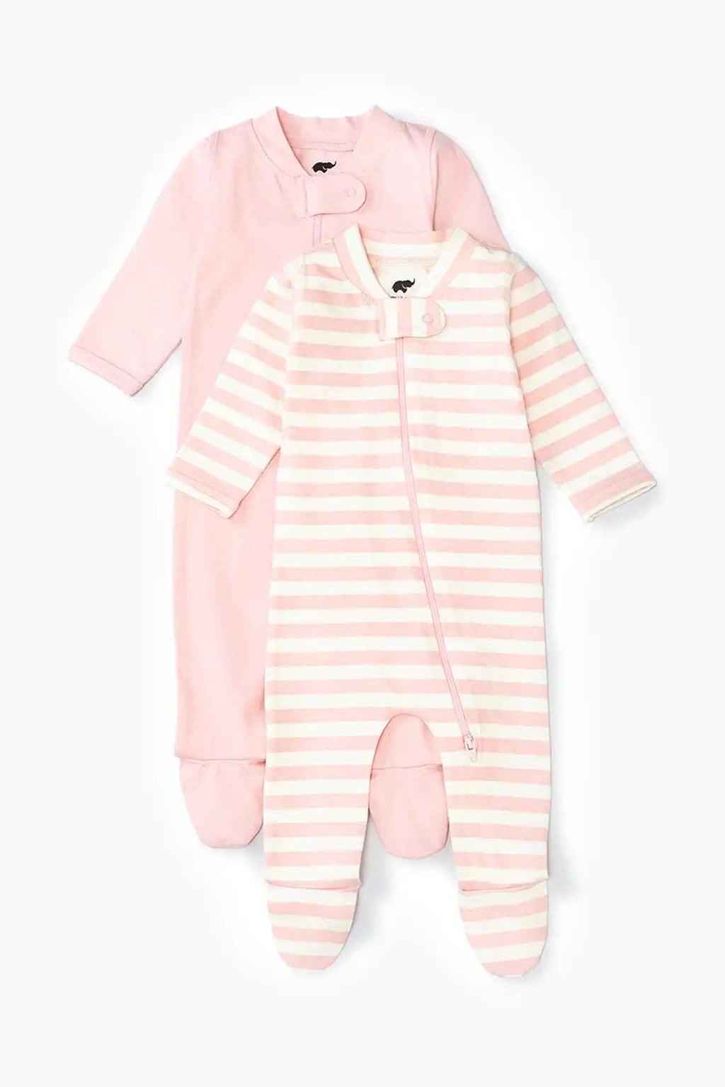 Double down on comfiness with a two-pack of our organic cotton footed PJs. Your little one will love the softness. And they're also every parent's dream, given the easy zip-up style for quick diaper changes.