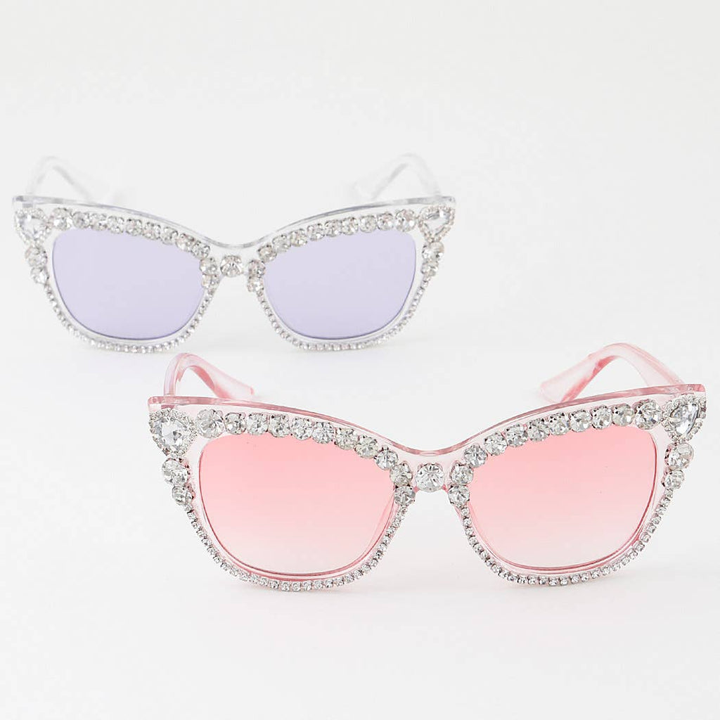 * Bright Bedazzled Cateye Sunglasses * 2.2 x 6" Approx * Color And Quantity May Vary * Discover the "Sparkle Vision Cat Eye Sunglasses" – where chic meets sparkle! These eye-catching sunglasses are adorned with shimmering rhinestones, ensuring you stand out in any crowd. With their unique cateye shape and vibrant design, these bright bedazzled sunglasses from H&D Accessories are a must-have for anyone looking to add a touch of glamour to their wardrobe.
