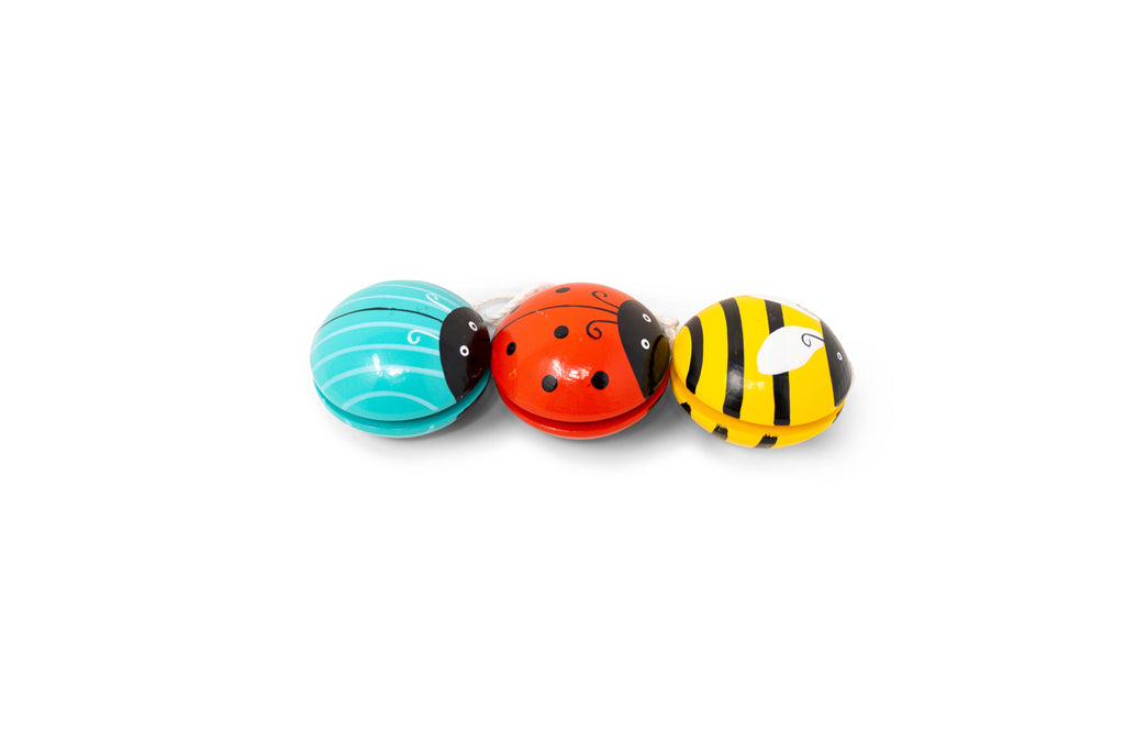 It's time for a good old-fashioned yo-yo party with our new Busy Bug yo-yos! Three beautifully colored buddies from the garden are represented - ladybug, bumblebee and beetle. Sturdy wooden construction, all non-toxic paints.