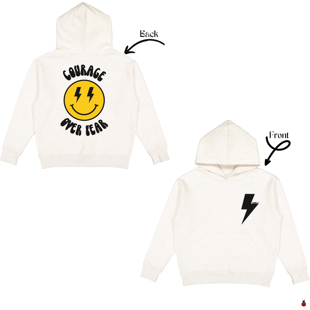 A bold reminder that courage doesn’t come from us—it comes from Him. This natural-toned tee features a hand-drawn smiley with a lightning bolt and bold lettering that reads: “Courage Over Fear” Inspired by Joshua 1:9 and the truth that we’re called to be strong and courageous. This design is a declaration of faith over fear, made for kids walking confidently in God’s promises. Color: Natural Fabric: 100% Cotton (pre-shrunk) Fit: Relaxed Unisex Youth Style Tip: Pair with denim and the quiet strength of knowing God goes with you.