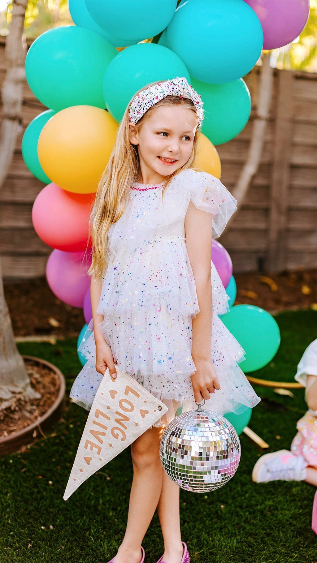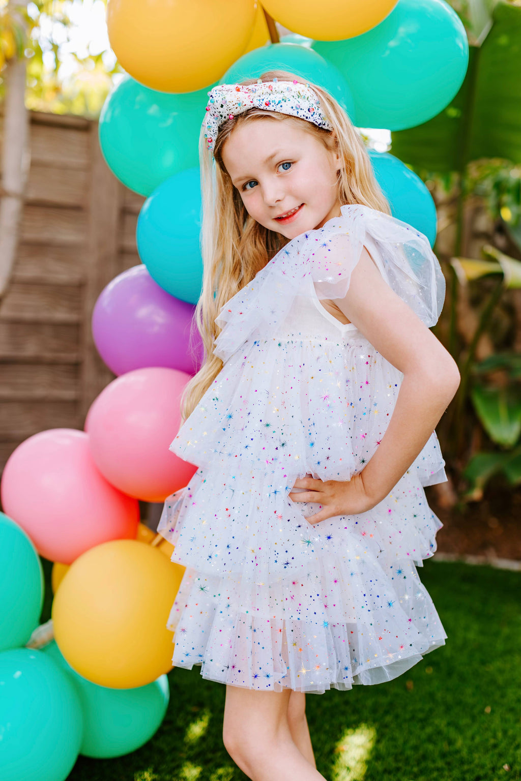 White Sparkler Foil Cake Dress | White Birthday Cake Dress
